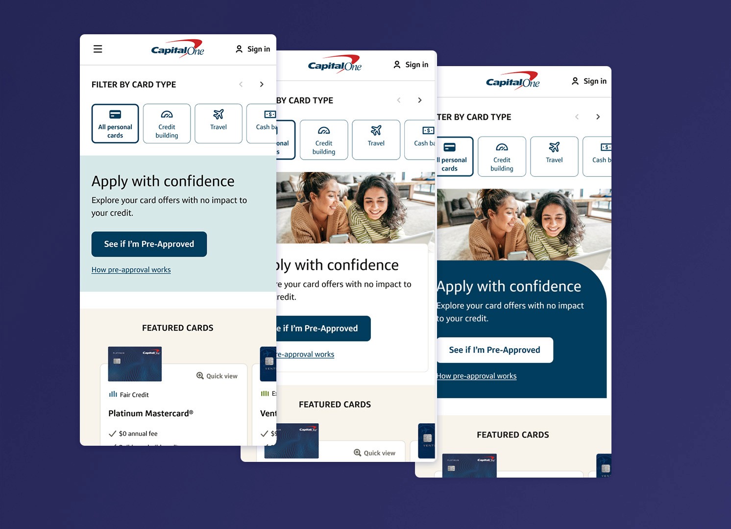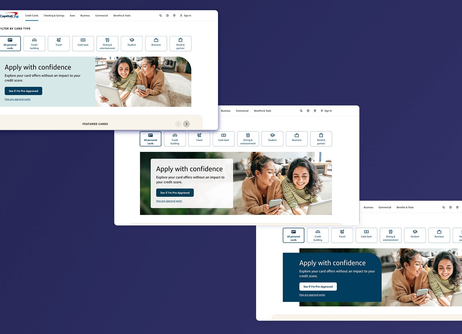 Challenger is a product initiative aimed at redefining the way users shop for credit cards. For the Challenger Banner Design, our goal was to test how dynamic visual treatment within the banner section could drive user engagement and increase pre-approval conversion.